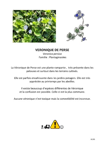 Aucune véronique n’est toxique mais la comestibilité est inconnue.
